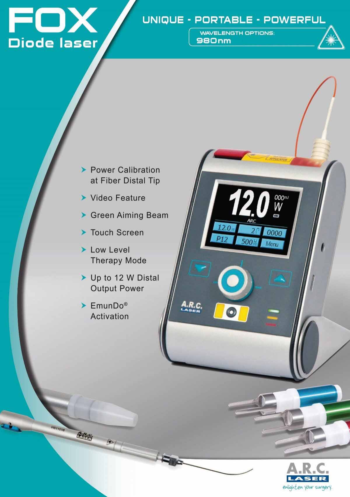 El rayo guía que usa nuestro FOX II® es de color verde lo cual asegura la visibilidad del cirujano y le da la tranquilidad de tratar el área específica que desea.